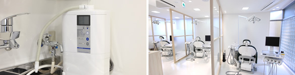 また、院内で使われる水については、酸性水(電解酸性機能水 下の左の写真)を使用しています。